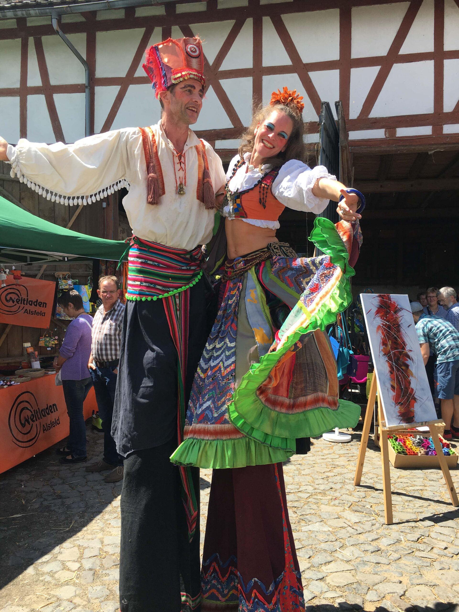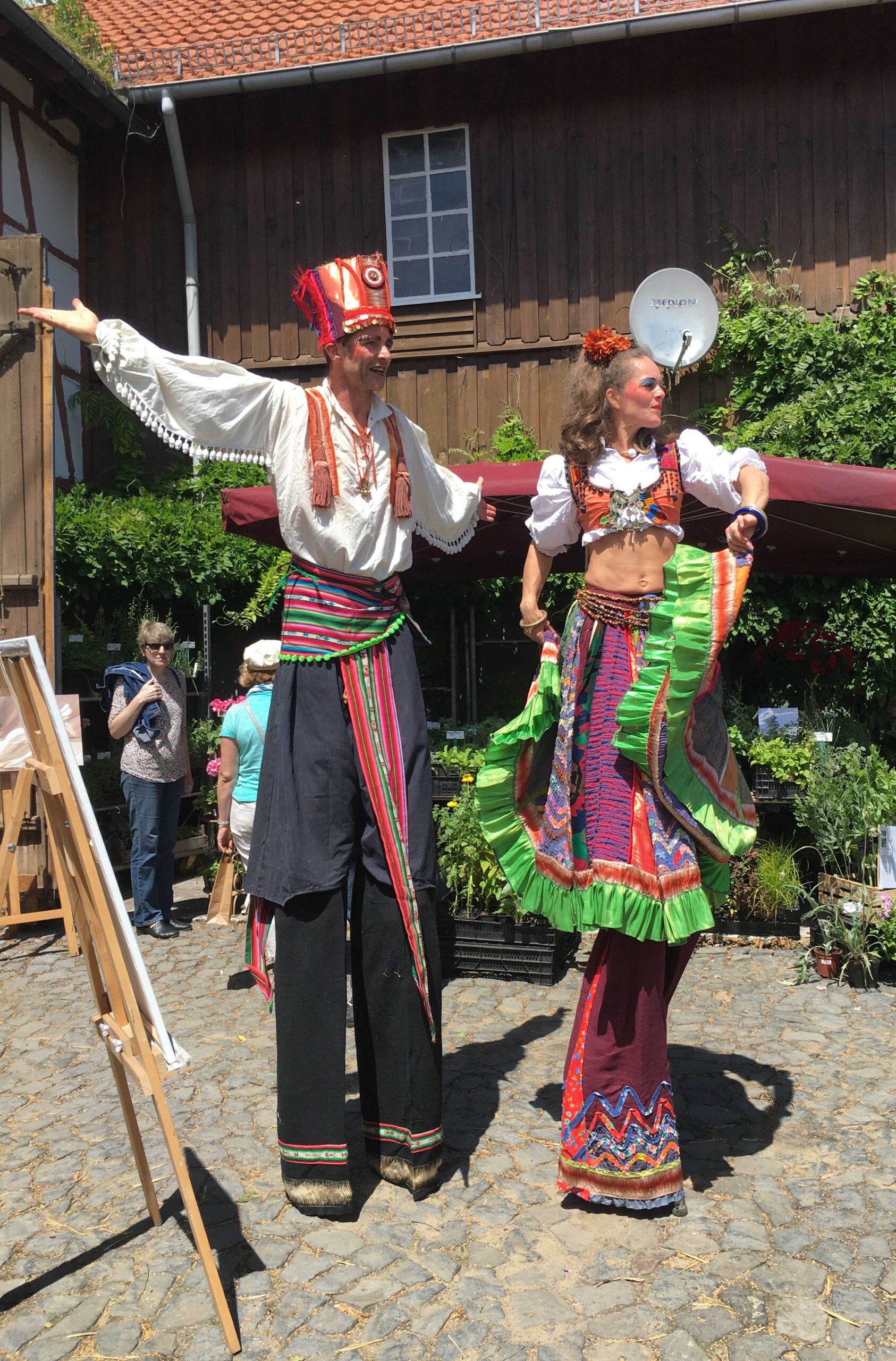 Laut, farbenfroh und freudig kommt der osteuropäische Tanz zu Ihnen. Stelzengänger, die in folkloristischen Kostümen zu traditioneller Musik einen stimmungsvollen Tanz gestalten. In einem Kreis wird das Publikum mit einbezogen. Gerne gehen sie auch als Stelzenparade und erobern die Herzen der Menschen.