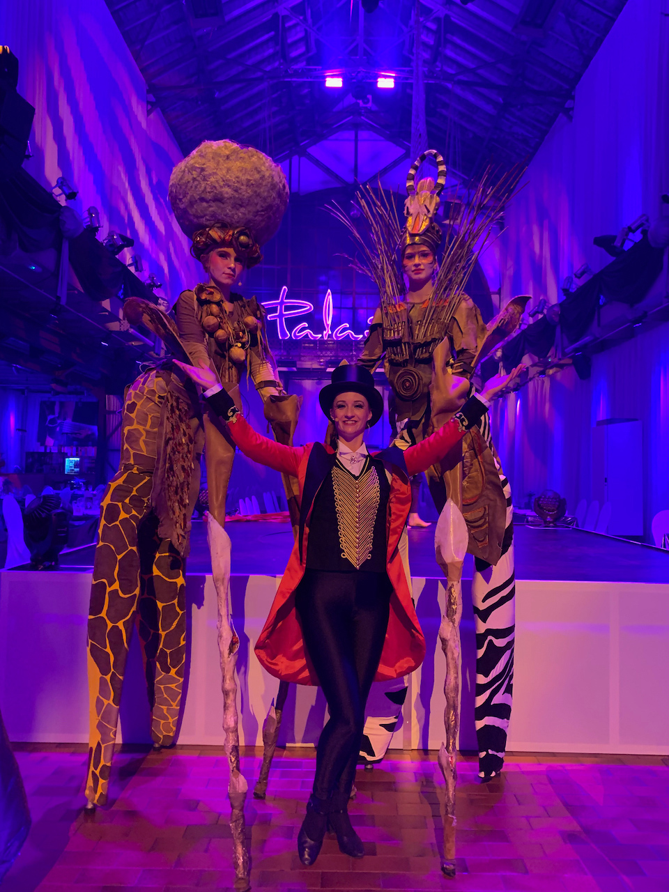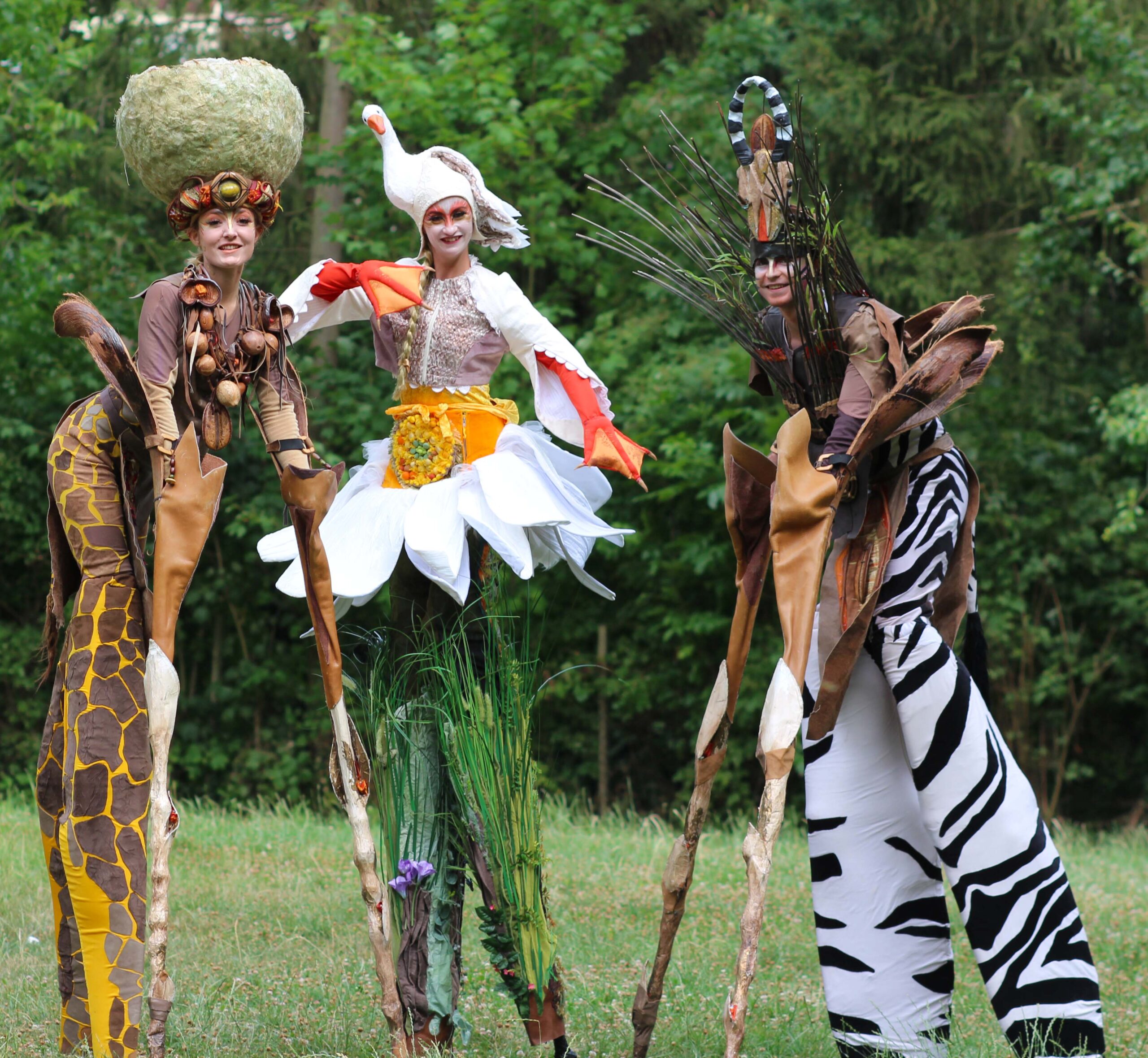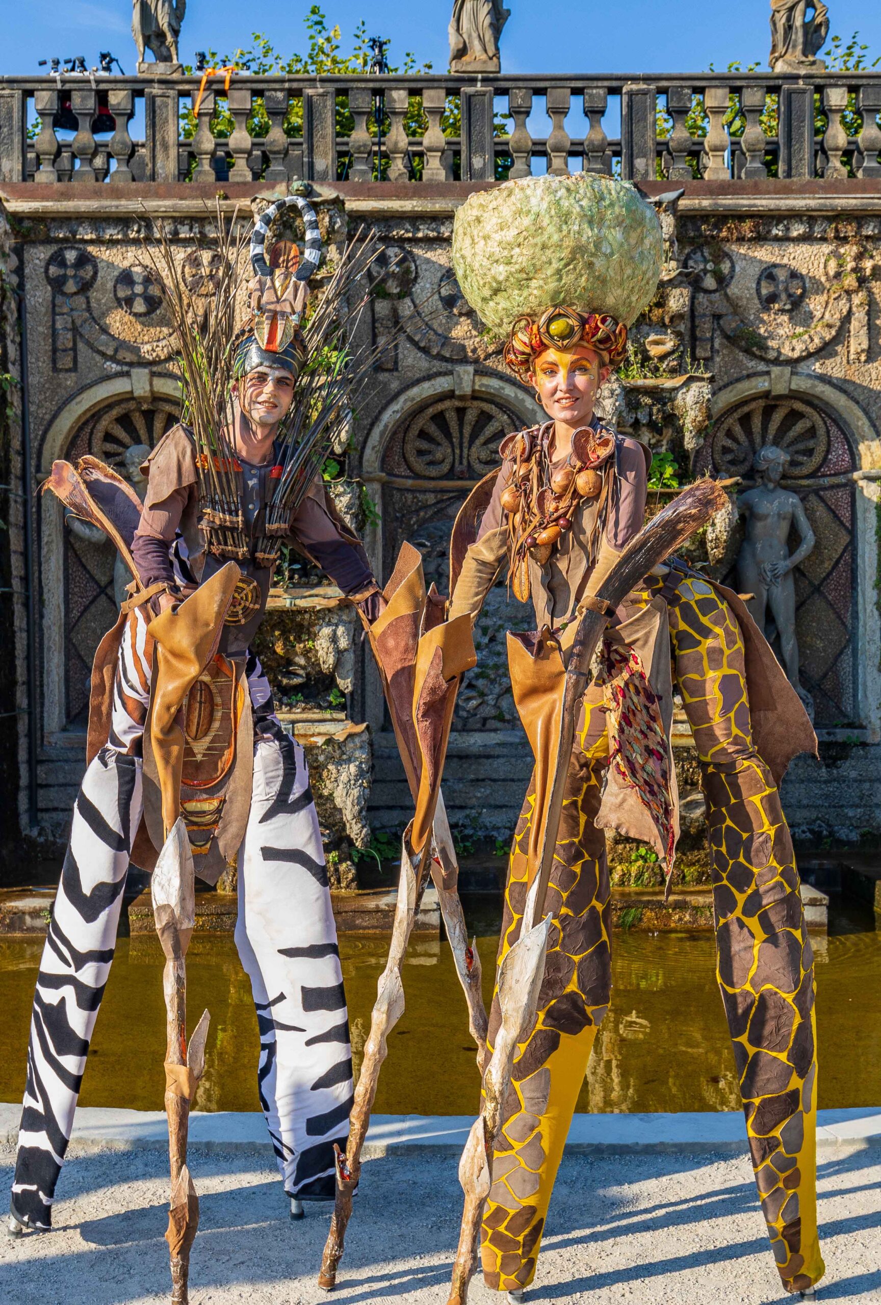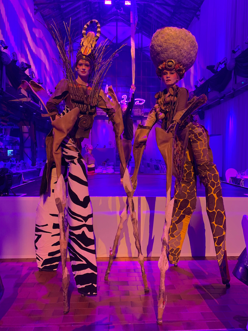 Cameelperd – bedeutet auf Afrikaans Giraffe. Mit diesen Figuren werden Sie in die Weite des afrikanischen Kontinents mitgenommen. Eine stolze afrikanische Wasserträgerin, die von Giraffenbeinen getragen wird, trifft sich mit einem mutigen Steppenkrieger, schnell wie ein Zebra. Die Cameelperd sind Lichtkostüme und werden durch ihre indirekte Beleuchtung anmutig in Szene gesetzt, begleitet von einer langen Geschichte eines beeindruckenden Kontinents.