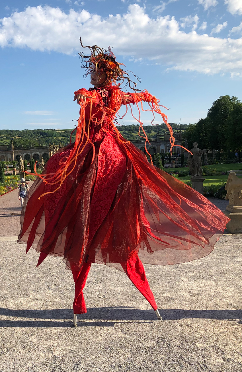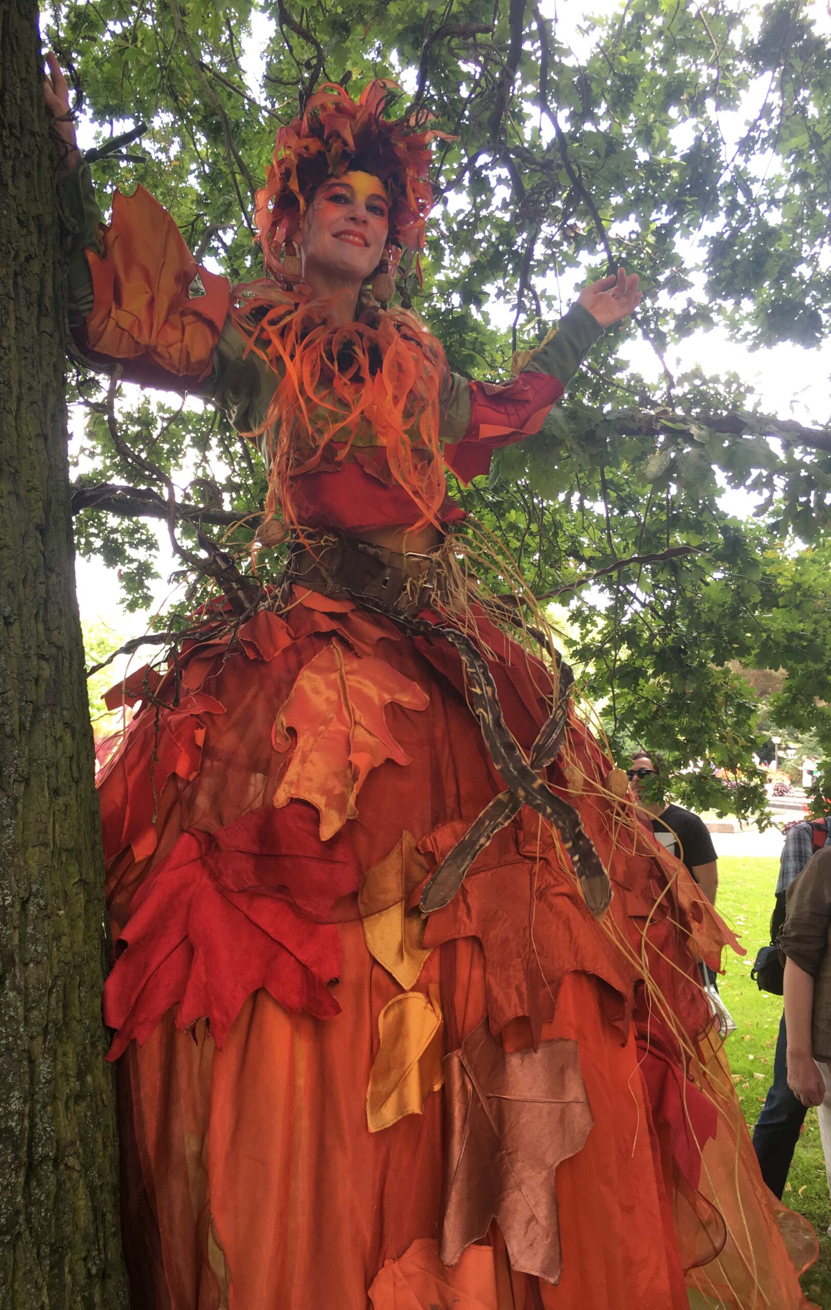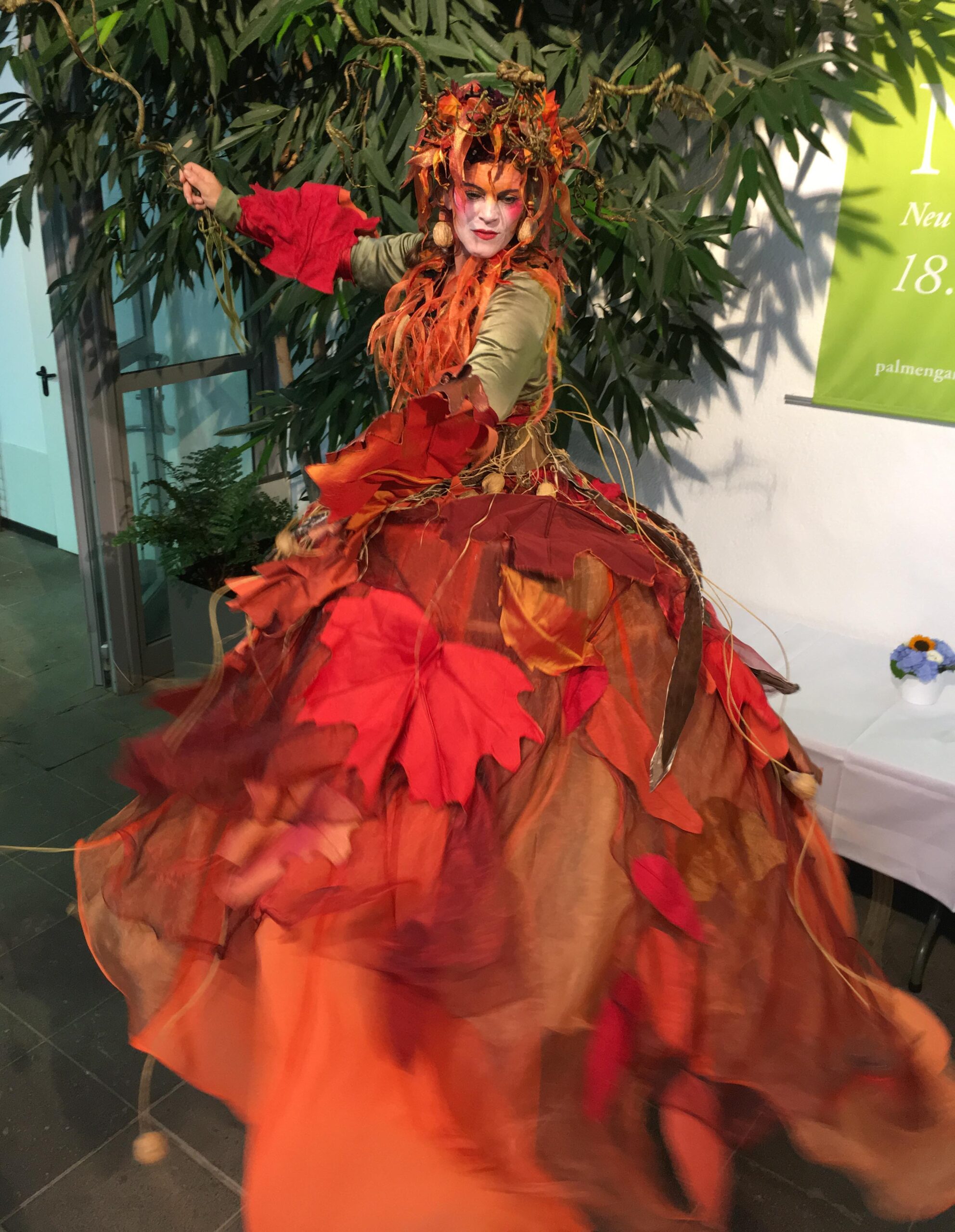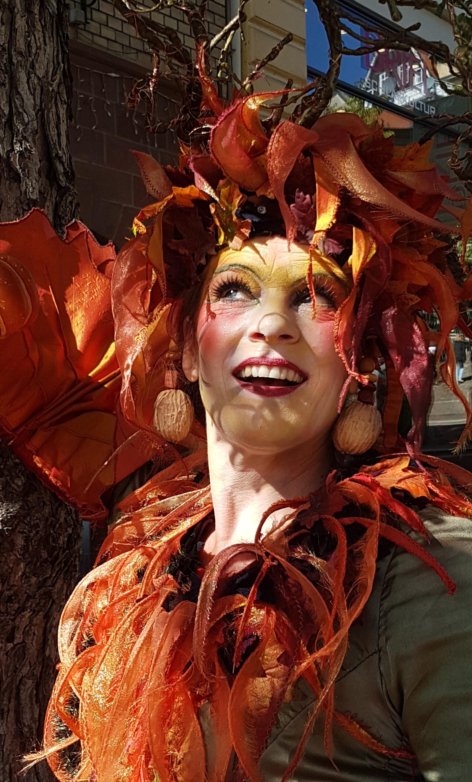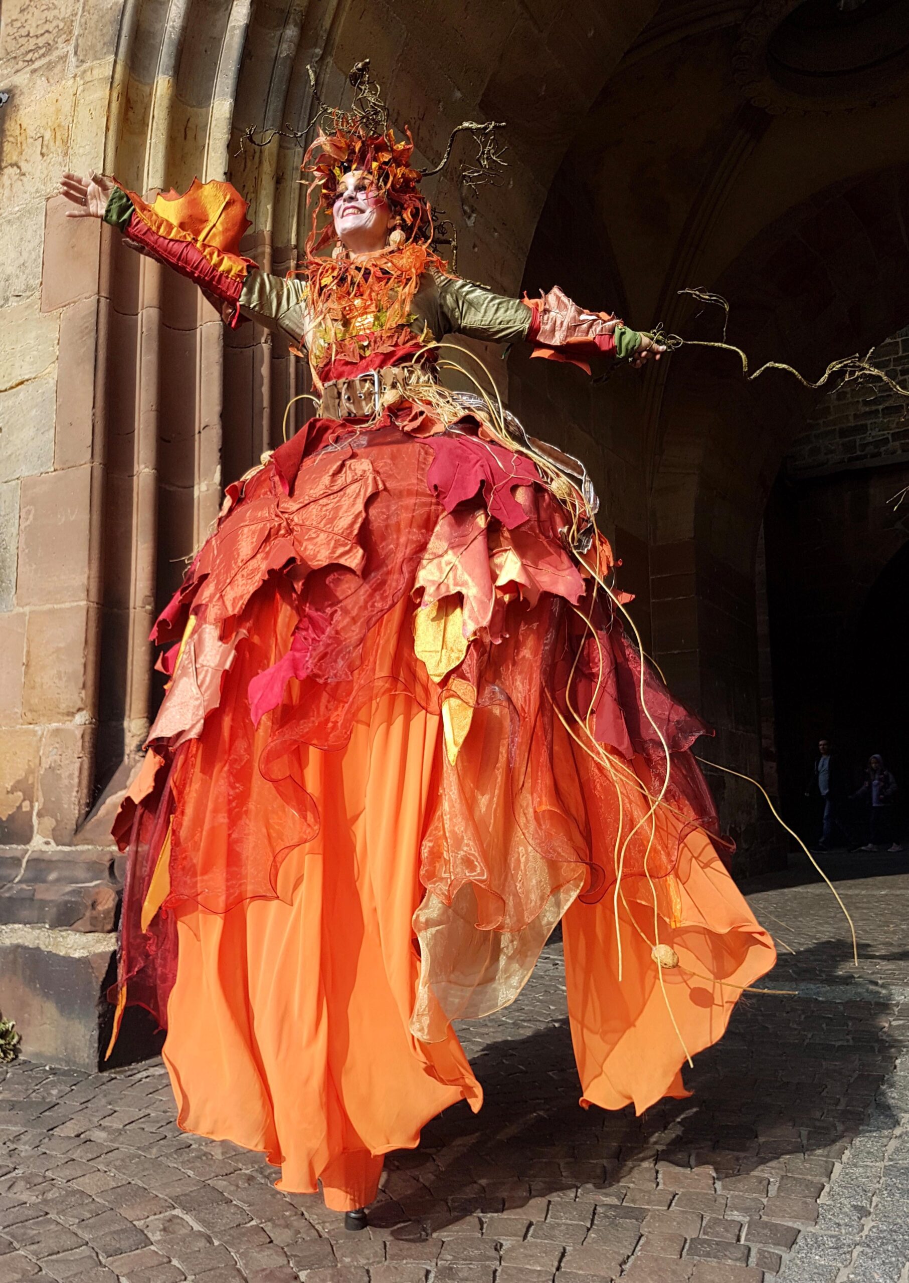 Sie bringt den Herbst, die Farben spiegeln sich in ihrem Laubgewand. Blätter, die gold-rot funkeln und auf ihrem großen Rock tanzen und fallen. Stolz trägt sie reifes Obst, Nüsse und die Ernte des Jahres zur Schau. Sie erinnert einen jeden an die eigene Fülle, die da ist, wenn das Jahr zu Ende geht.