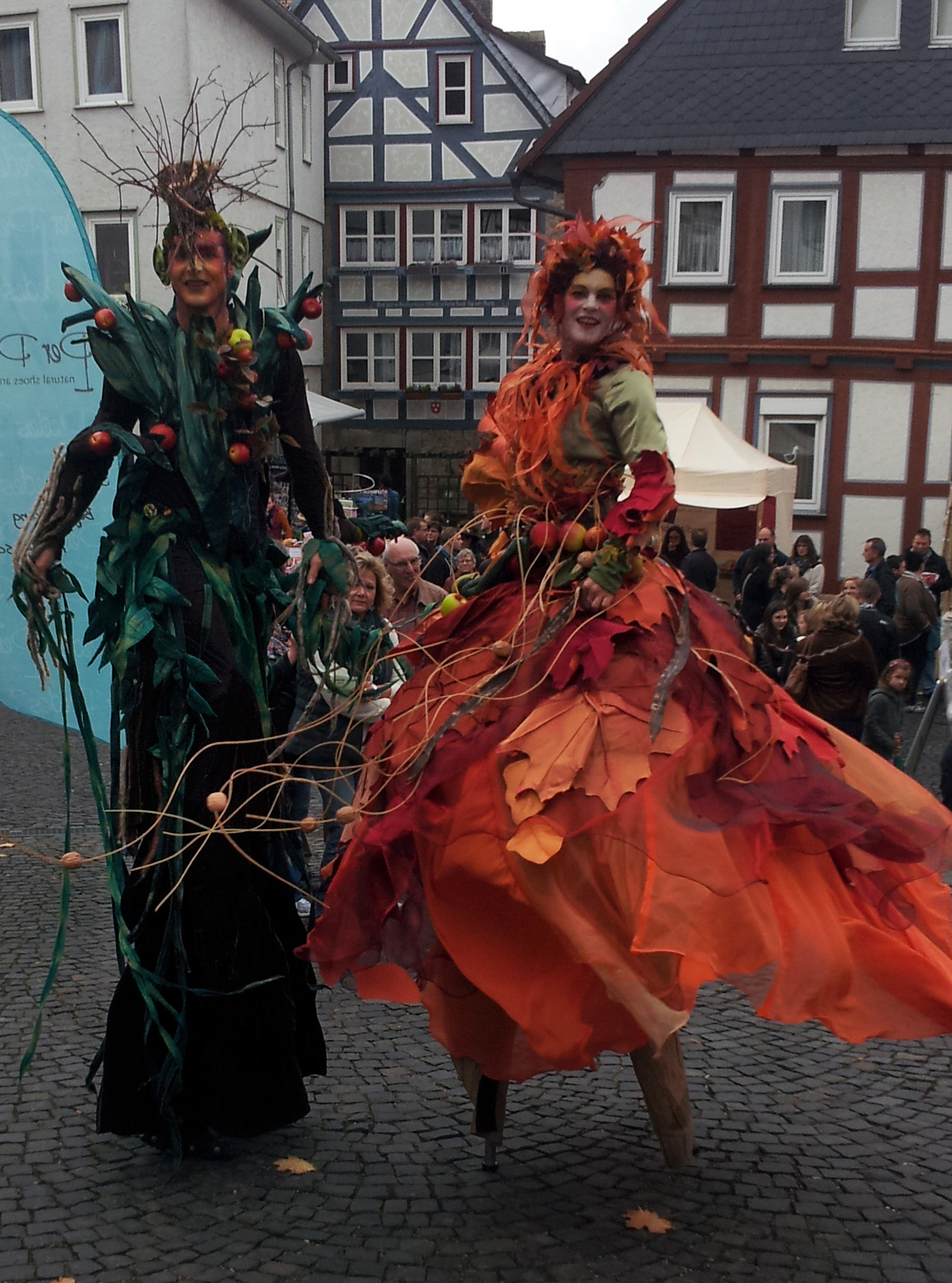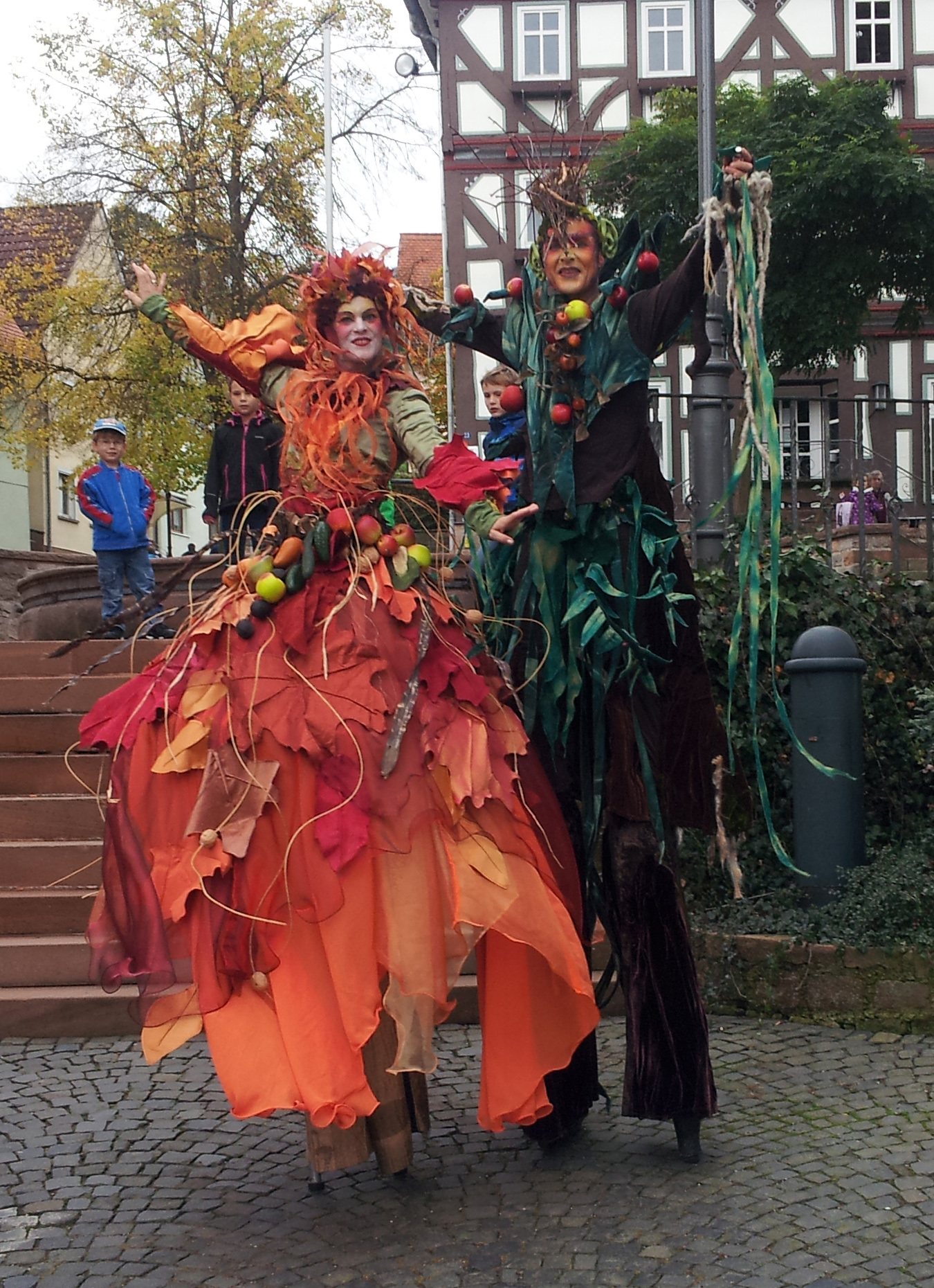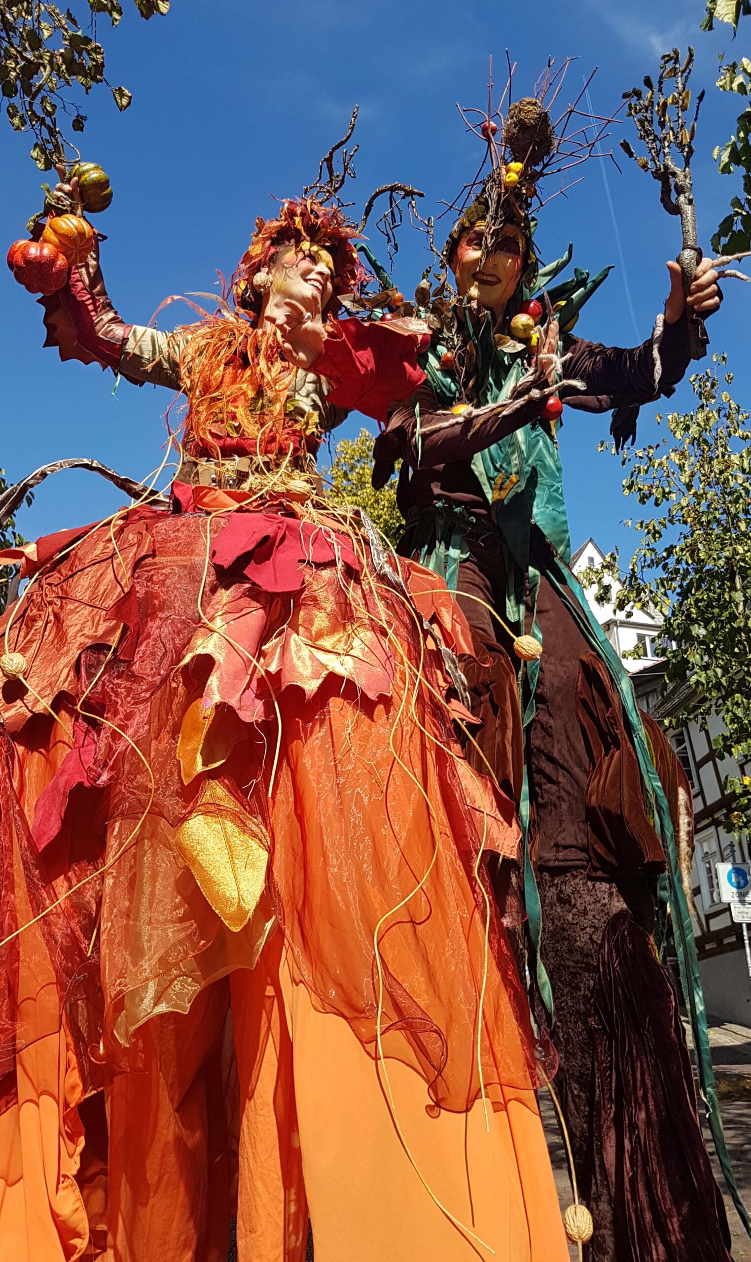 Sie bringt den Herbst, die Farben spiegeln sich in ihrem Laubgewand. Blätter, die gold-rot funkeln und auf ihrem großen Rock tanzen und fallen. Stolz trägt sie reifes Obst, Nüsse und die Ernte des Jahres zur Schau. Sie erinnert einen jeden an die eigene Fülle, die da ist, wenn das Jahr zu Ende geht.